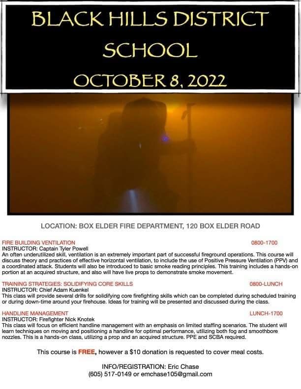 Your South Dakota Firefighters Association provides $14,000 ($2K per District), per year in financial assistance to help offset the instructional costs of providing Regional District Fire Schools.